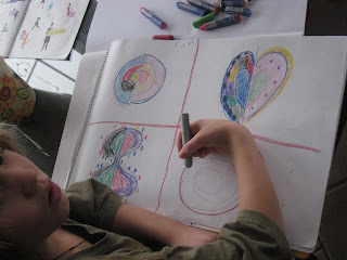 His favorite thing to do is color them in when we are finished. If you notice there is still a focus on round forms. He really enjoys these and asks to do them week after week. Soon we will be moving on to more advanced forms but for now this is it. We always start off with circles, straight and wavy lines and then we do our form for the day. Always switching hands. Don't under estimate or rush the mirror forms. This exercise is very important in their development and helps to establish writing and prevents or treats dyslexia. We use the big triangular lyra wax giants crayons and also stockmar.